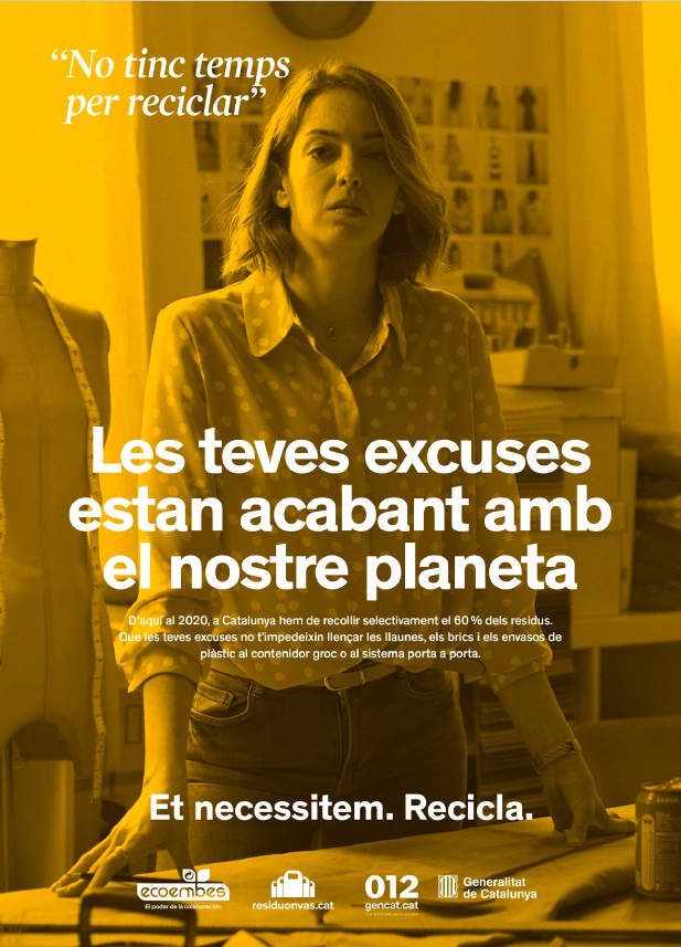 “En els diferents elements de la campanya s’exposen les excuses habituals que esgrimeix qui encara no recicla: ‘no tinc temps, em manca espai a la cuina, els contenidors estan lluny…’ Unes raons que es fan petites davant dels grans problemes ambientals ocasionats per una gestió irresponsable dels residus: l’augment de les emissions de gasos amb efecte d’hivernacle que contribueixen al canvi climàtic, l’impacte de les deixalles marines i plàstics de tot tipus als mars i als seus ecosistemes, o la sobreexplotació dels recursos naturals.”
