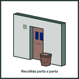 • Recollida porta a porta i transport dels residus: S’entén com a sistema de recollida porta a porta, el sistema de recollida de residus municipals domiciliària, realitzat pel Consorci, a través de l’empresa concessionària, amb els seus recursos materials i humans. Els operaris recullen les bosses davant dels domicilis, tan si estan disposades dins d’un cubell com sense cubell, i les incorporen al camió.